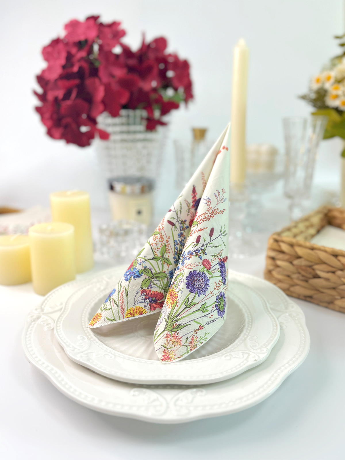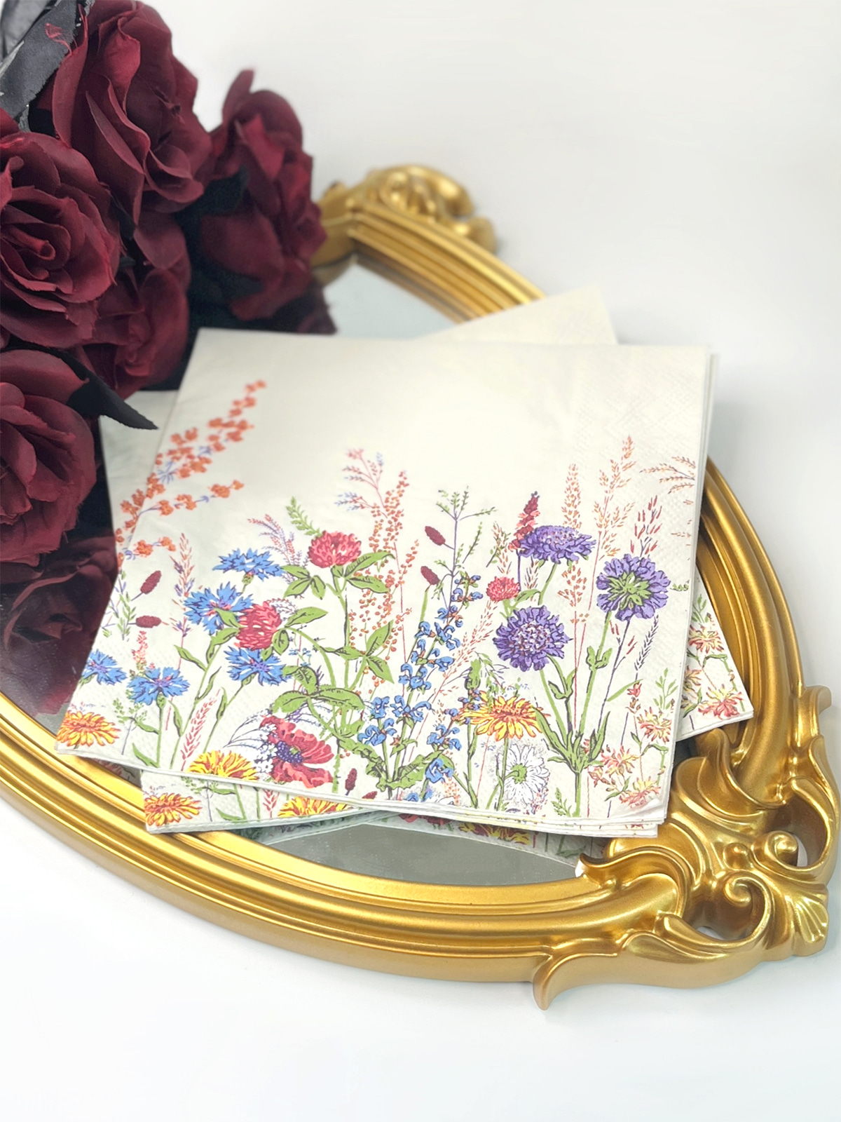These Vintage Watercolor Floral Paper Napkins, Disposable Wild Flower Dinner Hand Towels will match all your party dinnerware, celebrations, and special occasions such as weddings, birthdays, garden tea, picnics, and spring floral parties, and also can be for decoupage.